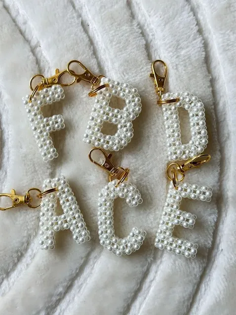 A cute and personalized alphabet beaded keychain, perfect for adding a stylish touch to your keys, bags, or gifts.