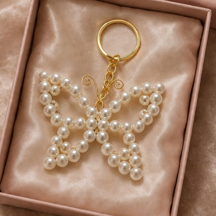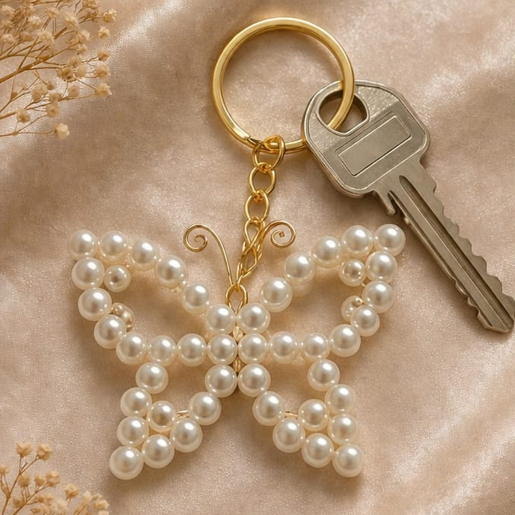 A cute butterfly-shaped beaded keychain designed to add a soft and stylish touch to your keys or bags.